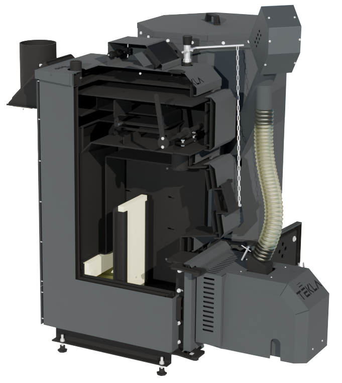 Výměník tepla je vyroben z vysoce kvalitní oceli o tloušťce 6 mm, která zaručuje dlouhou životnost, mechanickou odolnost a spolehlivý provoz i při dlouhodobém zatížení. Optimalizované uspořádání spalovací komory a výměníku umožňuje dosahovat vysoké účinnosti a efektivního přenosu tepla do topného systému.