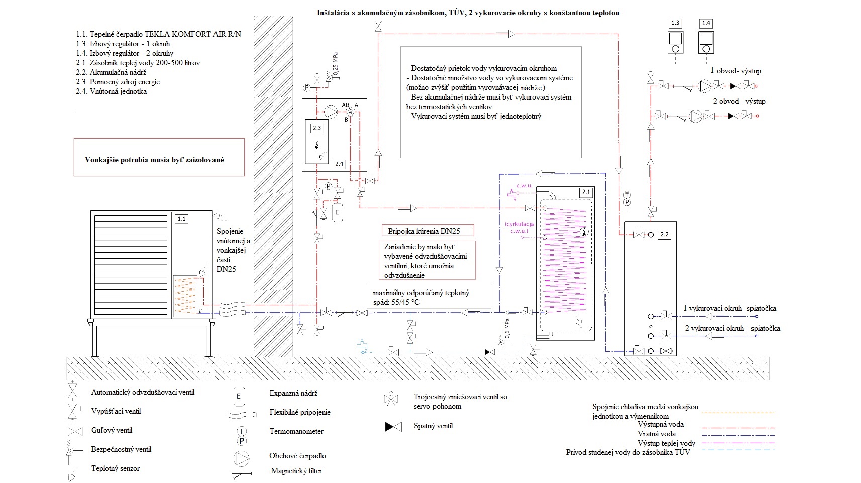 Kľúčovým elementom TEPELNÉHO ČERPADLA KOMFORT AIR je ohrev TUV a UK bez použitia prídavných špirál, teda iba kompresorom do -22 °C, čo znižuje spotrebu elektrickej energie o približne 30% a viac, oproti konkurenčným tepelným čerpadlám.