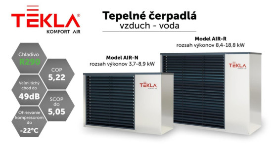 TEKLA KOMFORT AIR je séria tepelných čerpadiel vzduch - voda, s ohrevom bez prídavných špirál na predohrev TUV a UK.